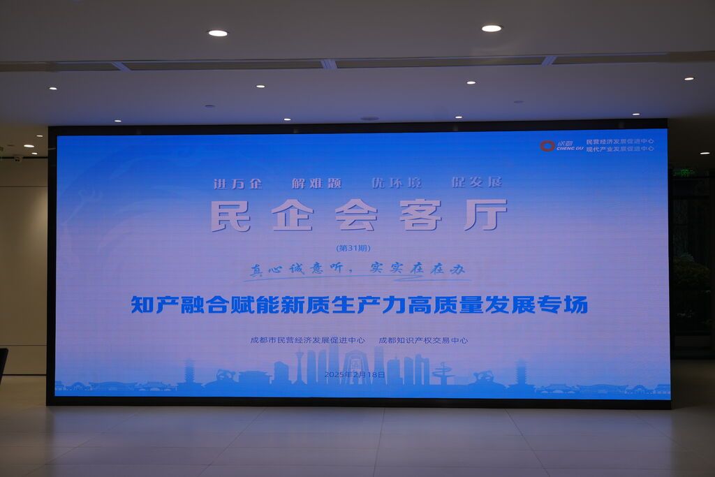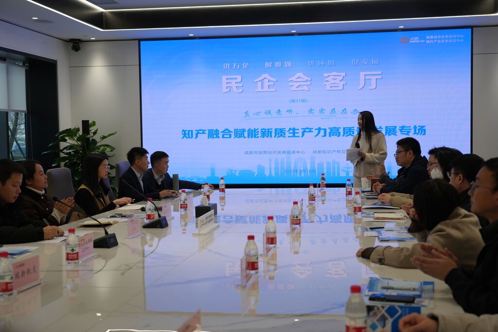 當(dāng)日下午,由成都市民營經(jīng)濟(jì)發(fā)展促進(jìn)中心主辦的“民企會客廳”——“知產(chǎn)融合賦能新質(zhì)生產(chǎn)力高質(zhì)量發(fā)展”專場活動上,“如何讓更多知識產(chǎn)權(quán)成果走出‘書房’、走進(jìn)‘廠房’”成為眾多企業(yè)關(guān)注的焦點。