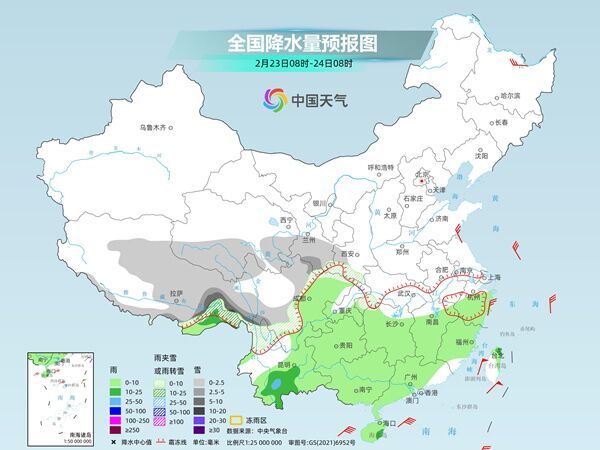 后天,西藏中東部、青海中南部、甘肅南部、陜西西南部、川西高原中部、云南西北部等地部分地區(qū)有小到中雪或雨夾雪,其中,西藏東部部分地區(qū)有大雪。江南大部、西南地區(qū)東部和南部、華南等地部分地區(qū)有小到中雨,其中,云南南部等地部分地區(qū)有大雨。