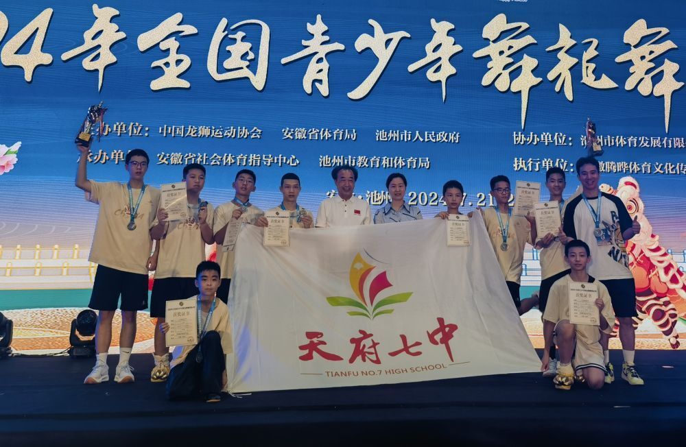 圖為天府第七中學(xué)北獅隊(duì)在2024年全國青少年舞龍舞獅錦標(biāo)賽上獲得創(chuàng)意龍獅冠軍