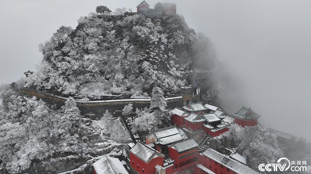 2025年2月23日,湖北十堰武當(dāng)山金頂景區(qū)出現(xiàn)霧凇景觀。由于大范圍降溫降雨,草木生出“玉樹瓊花”,金頂上銀裝素裹,仿佛冰雪世界。