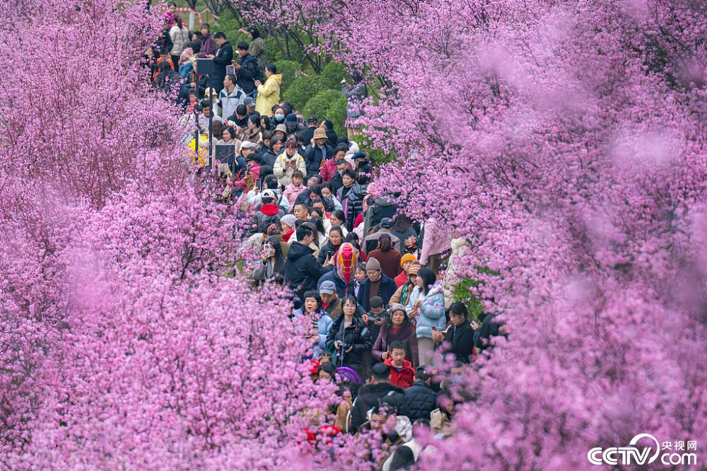 2025年2月23日,重慶,兩江新區(qū)百塘園公園大片美人梅綻放,如同一片粉色花海,吸引眾多市民參觀游玩。