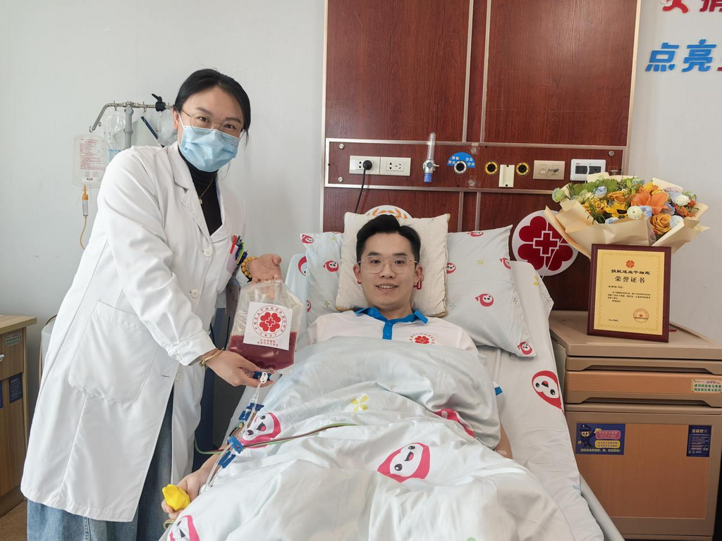 2018年5月,在無償獻(xiàn)血的活動(dòng)現(xiàn)場(chǎng),王澤軒發(fā)現(xiàn)有志愿者在進(jìn)行造血干細(xì)胞捐獻(xiàn)宣傳,仔細(xì)聆聽了后,他果斷選擇留下10毫升血樣加入中國(guó)造血干細(xì)胞捐獻(xiàn)者資料庫(kù),成為一名入庫(kù)志愿者。從那時(shí)起,一顆“生命種子”已悄然種下。2024年12月,王澤軒接到當(dāng)?shù)丶t十字會(huì)電話,告知他的入庫(kù)血樣與一位血液病患者配型成功。2025年2月24日,經(jīng)過數(shù)個(gè)小時(shí)的采集,志愿者王澤軒順利捐獻(xiàn)288毫升造血干細(xì)胞混懸液,為素未謀面的陌生人送去了生的希望,他在七年前播下的“生命種子”,在這個(gè)春天綻放出美麗的花朵。