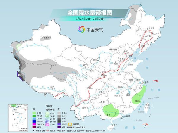 具體來看,今天,內(nèi)蒙古東北部、黑龍江西北部、新疆西部、西藏西部和北部、青海南部等地部分地區(qū)有小到中雪或雨夾雪,其中,新疆南疆西部山區(qū)、西藏西部等地部分地區(qū)有大到暴雪,局地大暴雪。浙江東部、福建北部、廣西中東部等地部分地區(qū)有小雨。