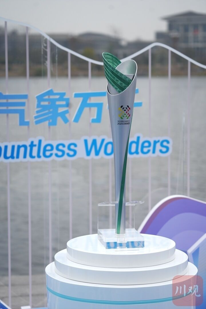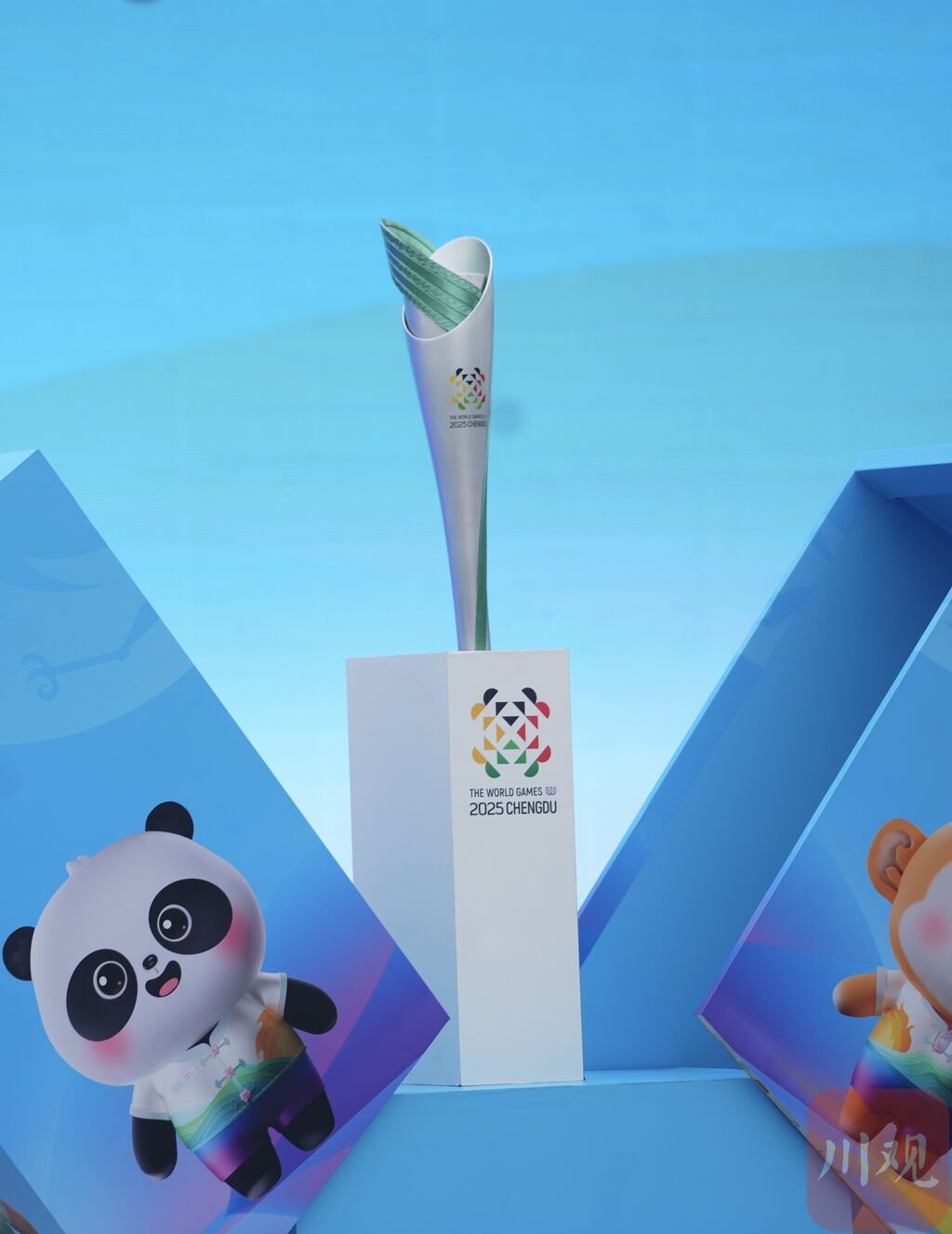 火炬背面吉祥物蜀寶、錦仔探出靈動(dòng)身姿,向世界宣告首支世運(yùn)火炬“緣”起天府,象征著運(yùn)動(dòng)會(huì)的活力、友好與多元文化融合。