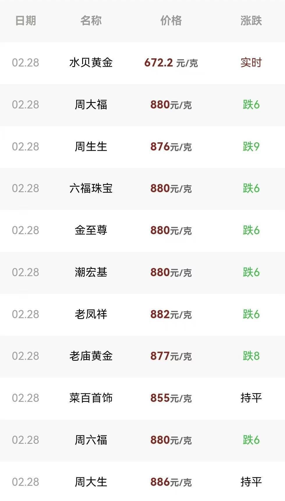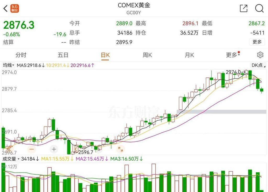 當(dāng)下的黃金價(jià)格走勢一直牽動著投資者的心弦,在市場期待黃金突破3000美元高位的背景下,2月27日,現(xiàn)貨黃金下跌1.34%,報(bào)2877.24美元/盎司,COMEX黃金期貨跌1.46%,報(bào)2887.80美元/盎司,受此影響,周大福、六福珠寶、周生生等品牌黃金價(jià)格從逼近900元/克回落至880元/克關(guān)口。