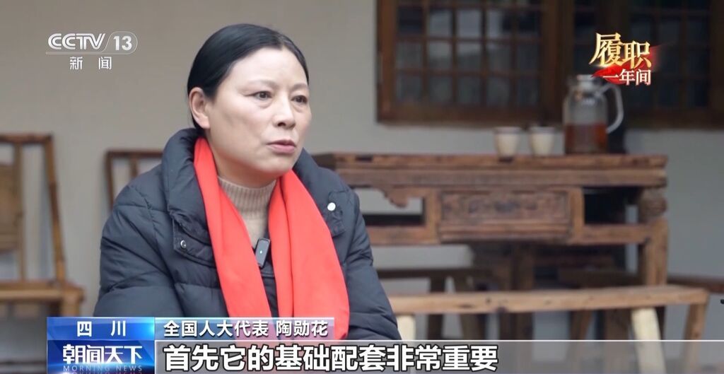 雨水節(jié)氣剛過(guò),記者來(lái)到四川成都?jí)郯叉?zhèn)的岷江村,全國(guó)人大代表陶勛花,正在村民茍紅蓉家中走訪,了解村民們的需求。因?yàn)橐疹櫦抑猩〉睦先?,三年前,在外地?wù)工的茍紅蓉回來(lái)后,就沒(méi)有再出去。