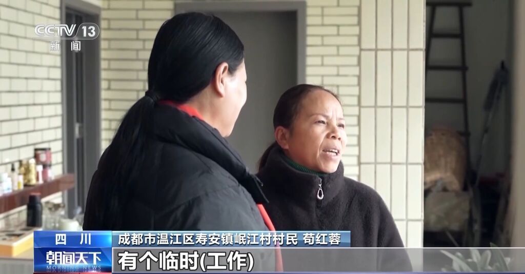成都市溫江區(qū)壽安鎮(zhèn)岷江村村民 茍紅蓉:讓我們這些在家里照顧老人的,有個(gè)臨時(shí)工作,有點(diǎn)兒收入。每天在家里,除了地頭和照顧老人,好多時(shí)候也沒(méi)有啥事了。
