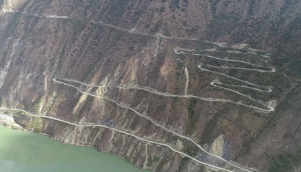 18公里的盤山公路從大渡河峽谷中沿著陡峭的山坡盤旋爬升,連接了四川省甘孜藏族自治州瀘定縣嵐安鄉(xiāng)與國道318線。從空中俯瞰,山路形似一只巨大的人手,也被當(dāng)?shù)卮迕裥蜗蟮胤Q為“手掌路”。