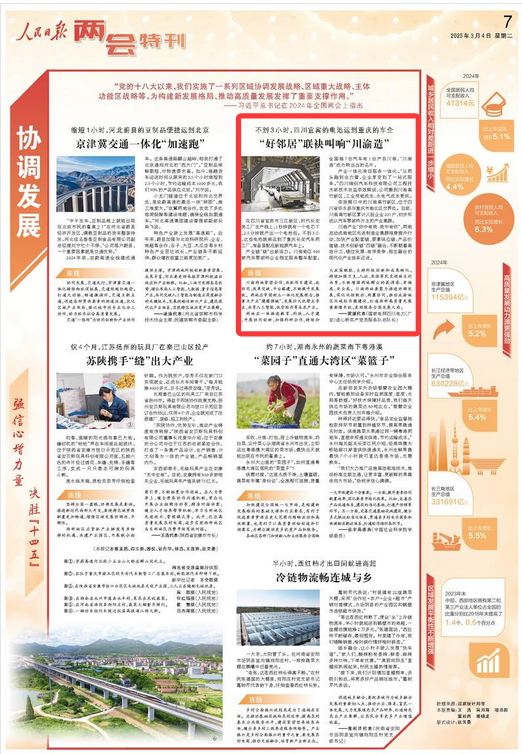 川渝兩地緊密合作,共抓項目建設(shè)、政策協(xié)同、改革突破、平臺搭建,不斷提升發(fā)展能級。兩地應(yīng)牢固樹立一體化發(fā)展理念,推動重點產(chǎn)業(yè)“建圈強鏈”,發(fā)展壯大優(yōu)勢主導(dǎo)產(chǎn)業(yè),共育人工智能、低空經(jīng)濟等未來產(chǎn)業(yè)。