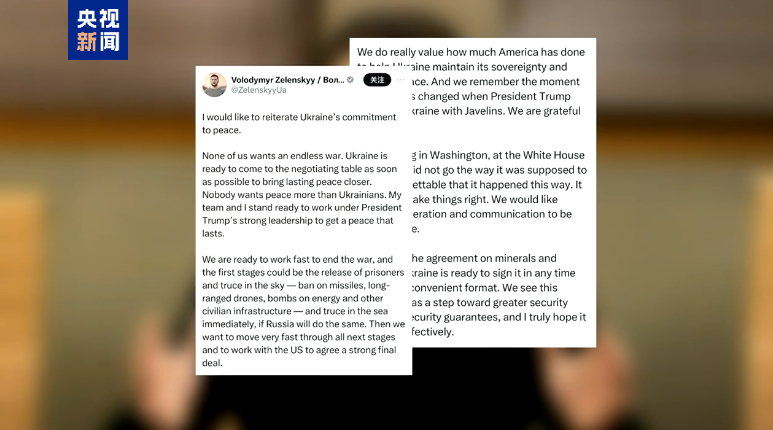 烏克蘭總統(tǒng)澤連斯基4日在社交媒體上發(fā)文說(shuō),他對(duì)日前與美國(guó)總統(tǒng)特朗普在白宮會(huì)晤時(shí)所發(fā)生的一切感到遺憾,烏方愿在任何時(shí)間簽署美烏礦產(chǎn)協(xié)議,愿盡快開啟談判,以實(shí)現(xiàn)持久和平。