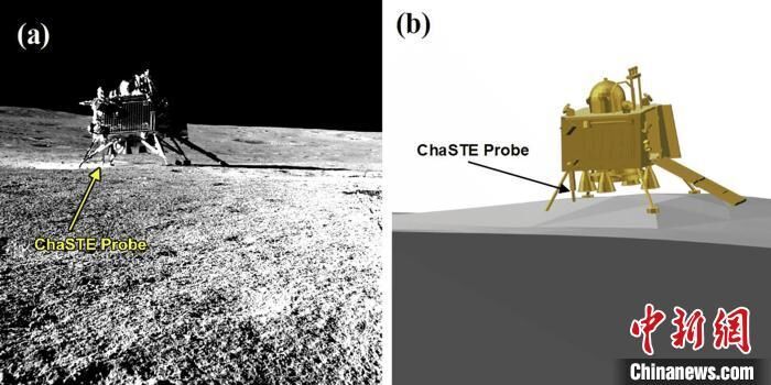 在本項(xiàng)研究中,論文第一作者兼通訊作者、印度艾哈邁達(dá)巴德物理研究實(shí)驗(yàn)室Durga Prasad K和同事及合作者一起,分析了“月船3號(hào)”著陸器上一個(gè)溫度探測(cè)實(shí)驗(yàn)在月表和月表下10厘米深處采集的溫度數(shù)據(jù),該著陸器在月球南極地區(qū)(約南緯69度)著陸。著陸點(diǎn)是一個(gè)面對(duì)太陽(yáng)、角度為6度的斜坡,作者發(fā)現(xiàn)著陸點(diǎn)的最高溫度為355開(kāi)爾文(約82攝氏度)并在月夜降至105開(kāi)爾文(約-168攝氏度)。不過(guò),在距離著陸器約1米的平坦區(qū)域探測(cè)到的峰值溫度更低,為332開(kāi)爾文(約59攝氏度)。