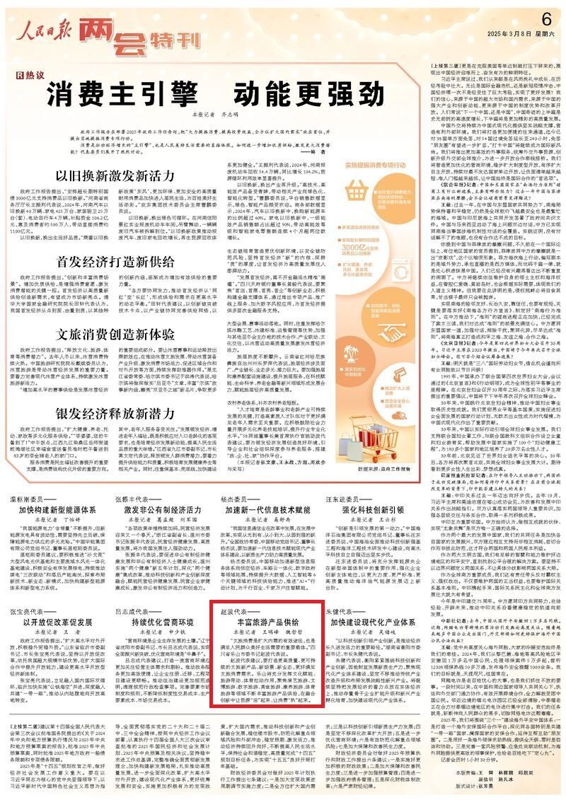“文旅消費是擴大內(nèi)需的有效途徑,也是滿足人民群眾美好生活需要的重要載體?!彼拇ㄊ飞绞形瘯涄w波代表說。