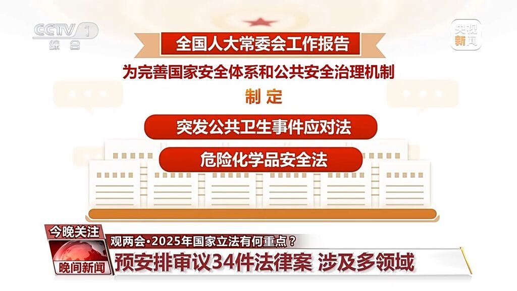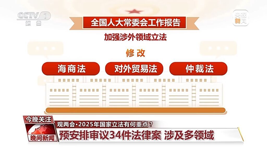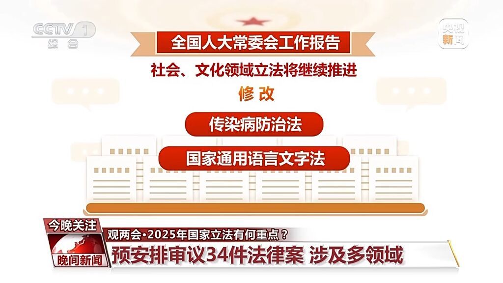 全國人大常委會工作報告顯示,2025年預安排審議34件法律案。