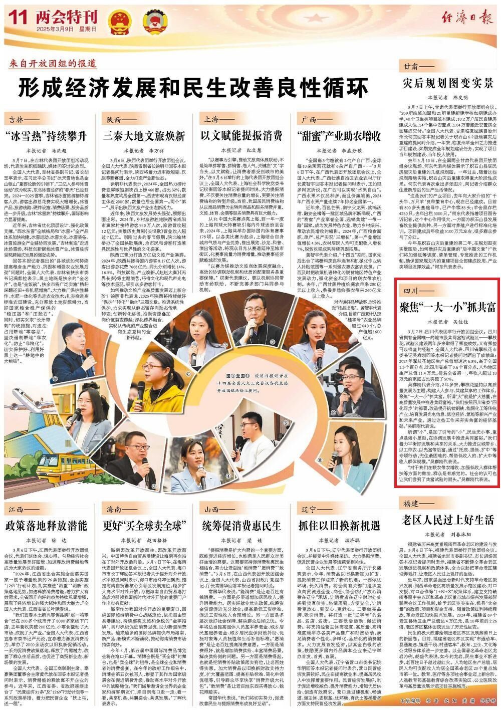 3月7日,四川代表團(tuán)舉行開放團(tuán)組會議。四川省擁有全國唯一的地市級共同富裕試驗(yàn)區(qū)——攀枝花,試驗(yàn)區(qū)建設(shè)兩年多來取得了哪些成效,又有哪些可以借鑒的經(jīng)驗(yàn)?全國人大代表、四川省攀枝花市委書記吳群剛回答本報記者提問時曬出了成績單:2024年攀枝花地區(qū)生產(chǎn)總值增速達(dá)6.3%,高于全國1.3個百分點(diǎn),比四川省高了0.6個百分點(diǎn),人均地區(qū)生產(chǎn)總值11.4萬元,排名全省第一,年收入超過10萬元的家庭占比突破了50%。