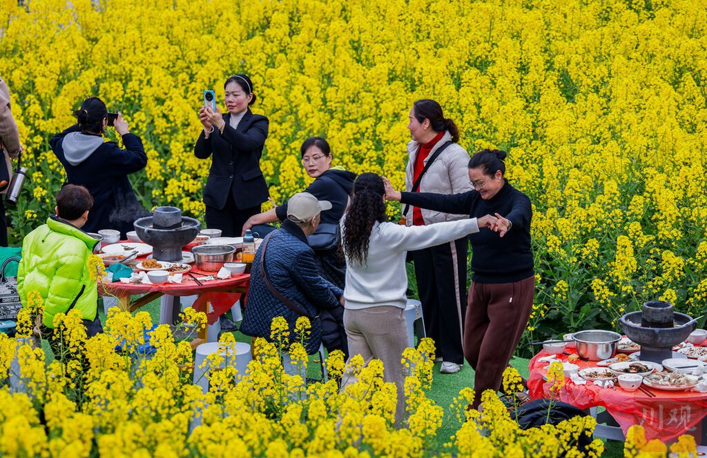 當(dāng)下,春日消費(fèi)熱潮勢(shì)頭正盛。身邊是搖曳的花海、面前是沸騰的火鍋,和親友一起在天府農(nóng)博園里吃頓“花田火鍋”;廣安市廣安區(qū),萬(wàn)畝油菜花海之上,游客乘坐直升機(jī),從百米高空俯瞰金色畫卷······鄉(xiāng)村農(nóng)文旅融合消費(fèi)場(chǎng)景不斷煥新。不少代表委員認(rèn)為,加快新型消費(fèi)發(fā)展,也要重視農(nóng)村這個(gè)潛在的巨大市場(chǎng)。