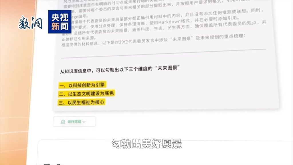 我們繼續(xù)向AI智能體提問,讓他根據(jù)代表、委員關(guān)于“未來”的表述,結(jié)合實(shí)際,描摹出可感知的發(fā)展圖景。