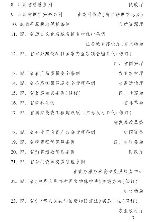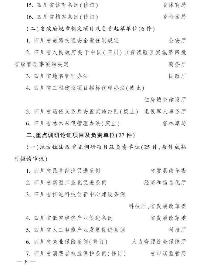 省政府2025年立法計(jì)劃項(xiàng)目共49件,主要圍繞推動(dòng)經(jīng)濟(jì)高質(zhì)量發(fā)展、深化成渝地區(qū)雙城經(jīng)濟(jì)圈建設(shè)、推動(dòng)城鄉(xiāng)融合發(fā)展、推動(dòng)安全發(fā)展、保障改善民生和傳統(tǒng)文化傳承、維護(hù)法制統(tǒng)一等6方面重點(diǎn)領(lǐng)域。