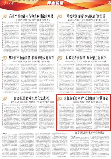 “四川農(nóng)業(yè)大學(xué)不僅要培養(yǎng)更多扎根基層、把論文寫在大地上的技能人才,更應(yīng)該為打造更高水平天府糧倉(cāng)建設(shè)提供重要的科技和人才支撐?!眳堑抡f,為此,他提出三條建議:一是進(jìn)一步加大西部雙一流高校投入,通過設(shè)立“西部高教振興專項(xiàng)基金”等方式加大財(cái)政傾斜力度,重點(diǎn)支持西部高校學(xué)科建設(shè)、師資引進(jìn)和人才培養(yǎng)等,構(gòu)建起支持西部地區(qū)高教振興的長(zhǎng)效機(jī)制。二是將西南生物育種重大創(chuàng)新平臺(tái)建設(shè)納入“兩重”項(xiàng)目建設(shè)范圍,一方面為加快生物育種科技領(lǐng)域的自立自強(qiáng)提供堅(jiān)實(shí)基礎(chǔ),也為打造更高水平天府糧倉(cāng),確保戰(zhàn)略腹地糧食安全提供重要保障。三是優(yōu)化支出結(jié)構(gòu),強(qiáng)化經(jīng)費(fèi)使用效益,同時(shí)加快資金撥付,提高預(yù)算執(zhí)行進(jìn)度。針對(duì)設(shè)備更新、科技成果轉(zhuǎn)化等項(xiàng)目,根據(jù)整體推進(jìn)效果,據(jù)實(shí)據(jù)效、分類分檔予以事后獎(jiǎng)補(bǔ),有效實(shí)施激勵(lì)引導(dǎo)。優(yōu)化工作流程,提高決策效率,加快資金下達(dá),減少“等米下鍋”現(xiàn)象。