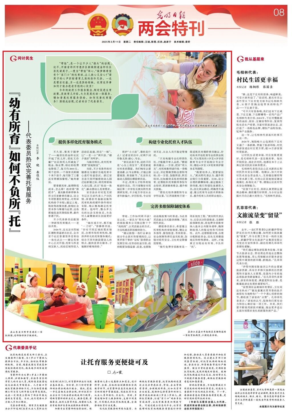 今年的政府工作報(bào)告提出,制定促進(jìn)生育政策,發(fā)放育兒補(bǔ)貼,大力發(fā)展托幼一體服務(wù),增加普惠托育服務(wù)供給。如何完善托育服務(wù)?圍繞此話題,記者采訪了代表委員。