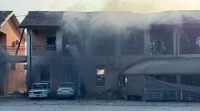 從現(xiàn)場照片來看,這棟購物中心的玻璃幕墻完全損毀,地面散落著商品碎片和血跡。