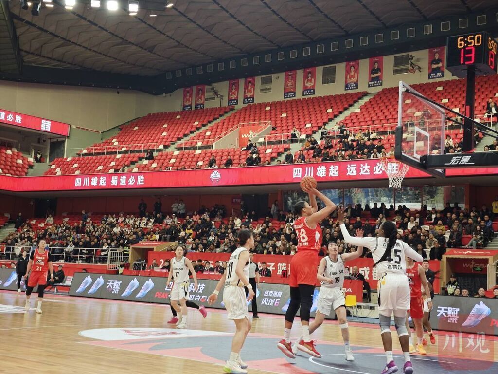 3月13日晚,2024—2025賽季中國女子籃球聯(lián)賽(WCBA)季后賽開啟新一輪激戰(zhàn)。四川蜀道遠(yuǎn)達(dá)女籃坐鎮(zhèn)主場(chǎng)四川省體育館,迎戰(zhàn)江蘇南鋼女籃。四川女籃以一邊倒的態(tài)勢(shì)取得勝利,96∶57輕取對(duì)手,以總比分3∶0的大比分闖入季后賽四強(qiáng),向著衛(wèi)冕之路再近一步。